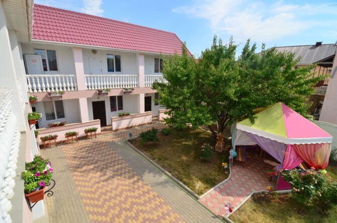 Недорогой вариант проживания на курорте предлагает гостевой дом «Радуга». Владельцы предлагают размещение в 3, 4, 5 местных номерах. В каждом имеется свой санузел, установлены кондиционеры. Дом удобно расположен вдали от проезжей части, поэтому в частном дворике можно спокойно гулять с малышом и дышать свежим воздухом. Утюг, гладильную доску и фен дадут бесплатно, стирка является платной услугой. Питание не предоставляется. Работает прокат велосипедов.