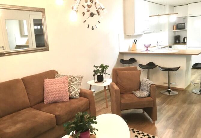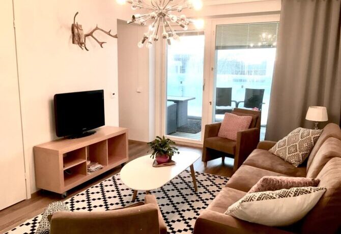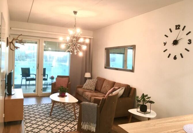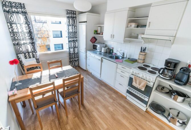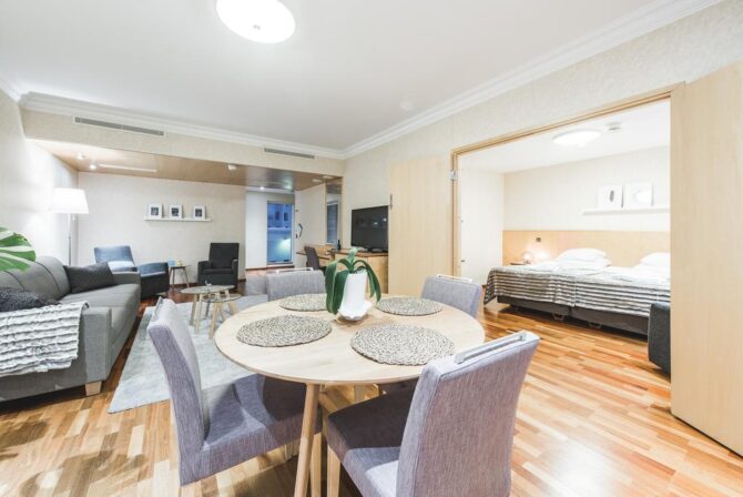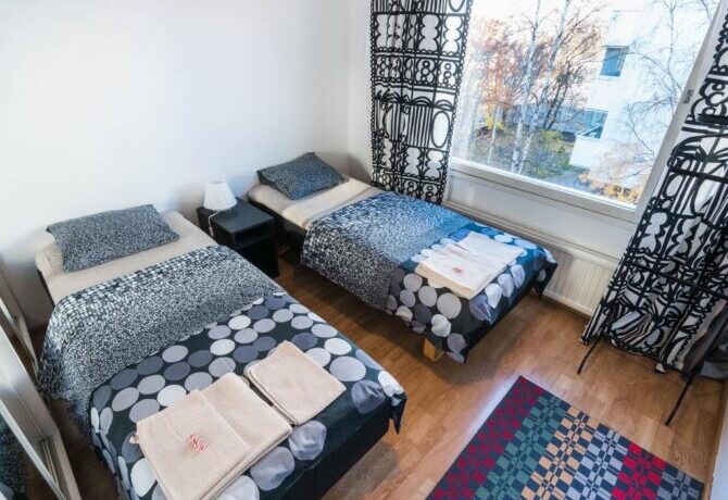 Расположенные в нескольких шагах от железнодорожного вокзала двуспальные апартаменты максимально вмещают до семи человек – это самое выгодное предложение в финском городе для такой большой компании.