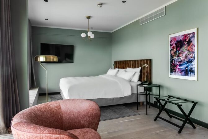 Все номера в отеле выдержаны в элегантном стиле, а неповторимый образ завершают уникальные картины и скульптуры. Приблизиться максимально к искусству и получить невероятный опыт можно в дизайнерских номерах, оформленных финскими артистами.