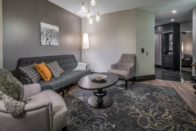 - Улучшенные апартаменты с просторной гостиной и сауной