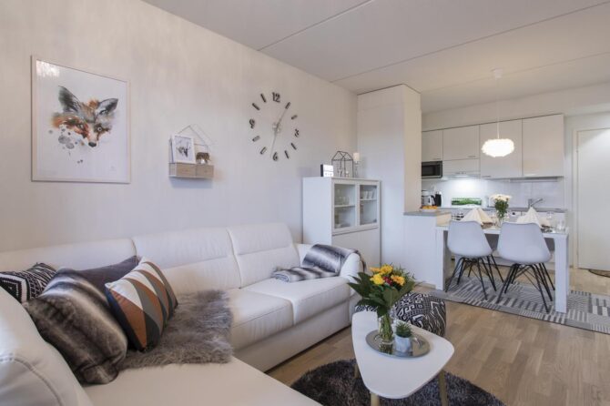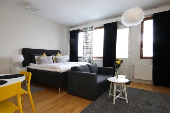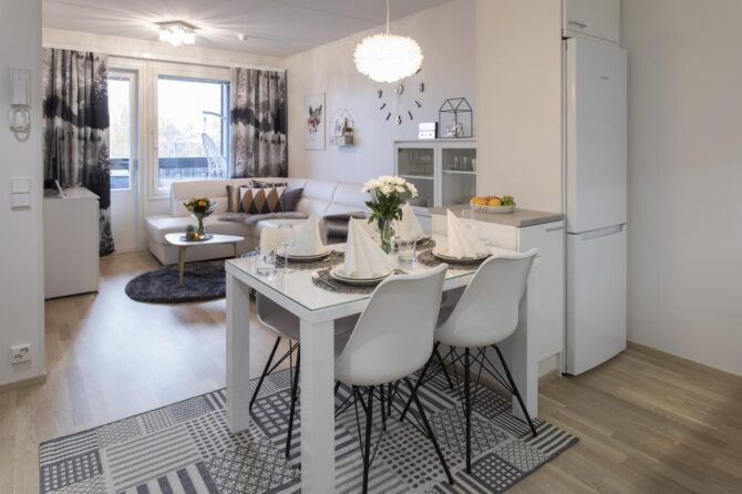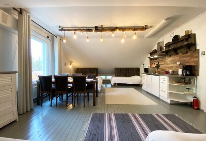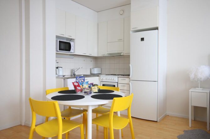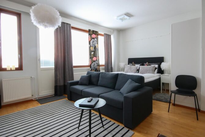 Апартаменты находятся в 600 м от железнодорожной станции Рованиеми. Четырехэтажное здание удобно расположено рядом с Художественным музеев и Домом культуры «Корунди». К услугам гостей апартаменты с одной или двумя спальнями, комнаты-студии. Постояльцы заботятся о питании самостоятельно. Рядом находится супермаркет, а приготовить еду можно на мини кухне. На стойке регистрации всегда помогут выбрать экскурсионный тур или обменять валюту. Возле здания находится уличная бесплатная парковка. В здании нельзя курить, останавливаться с домашними животными, устраивать вечеринки.