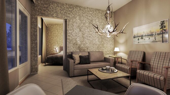 В 8-ми км от аэропорта Рованиеми и деревни Санта Клауса находится пятиэтажная уютная гостиница. В номерной фонд бутик-отеля входят комнаты на любой вкус и дизайн-предпочтения. Здесь есть люксы, полулюксы, семейные номера, комнаты, оформленные в стиле лофт. Окна выходят на улицу или в тихий внутренний дворик. Гостям предлагают включить завтрак в оплату проживания. Некоторые постояльцы отмечают его, как самый вкусный на территории всей Лапландии. Владельцы идут на встречу людям, соблюдающим особый тип питания. На «шведском столе» сервируется много вегетарианских и безглютеновых блюд. В окрестностях расположены все главные достопримечательности Рованиеми. Парк Санты находится в 5 км, а его деревня – в 6,8 км. В 100 м от отеля протекает река Кемийоки. До ближайшего подъемника на горнолыжный курорт Оунасваара нужно проехать 3,5 км.