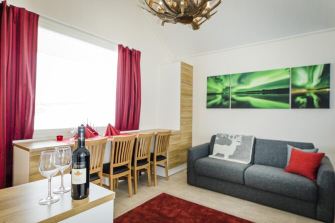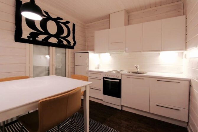 Одноэтажные апартаменты находятся в 5 км от подъемника на Оунсваара в природной зоне Рованиеми. Домики расположены на берегу реки Оунасйоки. Летом хозяин открывает причал, обустраивает детскую площадку. Зимой гости катаются на оленьих/собачьих упряжках и ходят на лыжах. У каждого домика есть своя терраса и гриль-жаровня. Работает прокат велосипедов, лыжного и рыболовного снаряжения. Утром подается континентальный завтрак. В течение дня еду можно приготовить на кухне. Трансфер от/до аэропорта осуществляется за дополнительную оплату. Ближайшая автобусная остановка находится в полутора километрах от комплекса. До центра города 2,8 км.