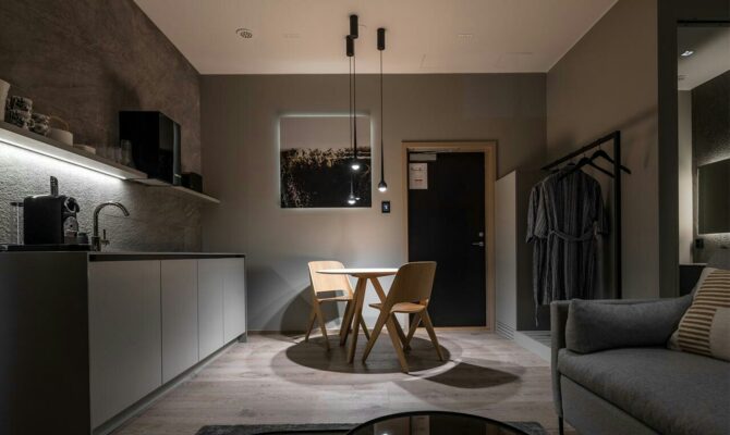 Обычно финские отели имеют собственные сауны. Но в апартаментах они бывают не всегда. В HAAWE Boutique Apart Hotel сауна и спа не предусмотрены.