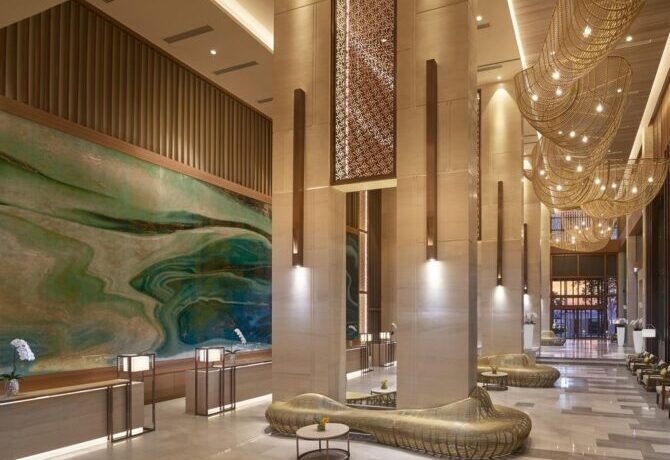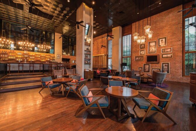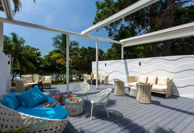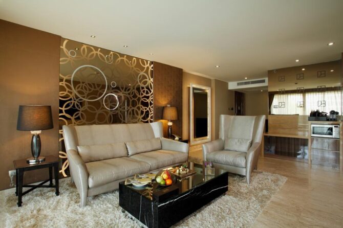 567 номеров отеля расположены в двух современных башнях, каждая из которых имеет свой собственный просторный вестибюль с искусными светильниками и яркой мебелью. Дерево и пастельные тона создают спокойную атмосферу в спа-салоне, который имеет большую открытую зону отдыха с исключительным видом на побережье. Рестораны с высокими потолками оформлены в индустриальном или современном стиле, а из бара на крыше открывается прекрасный панорамный вид на Сиамский залив.