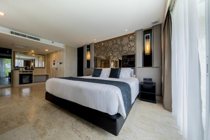 Стандартные удобства включают мини-бар, телевизор, кондиционер, электрический чайник, бесплатный WI-Fi и сейф. В большинстве номеров также есть просторные балконы с гамаками и панорамным видом на город. Ванные комнаты здесь серые, с тропическим душем и большими черными гранитными туалетными столиками. Кроме того, в распоряжении постояльцев халаты, тапочки и плотные шторы.