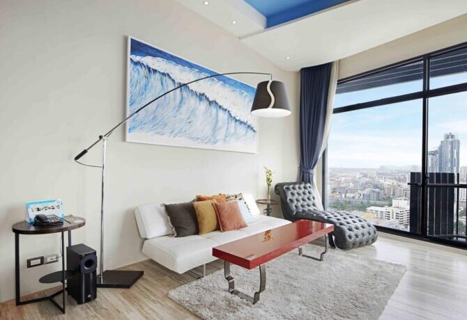 Современные номера и люксы делятся на шесть категорий, все они имеют изогнутые балконы с видом на море и шезлонгами или мягкими диванами. Белые цвета стен, постельных принадлежностей и балдахинов кровати подчеркнуты воздушными серебряными, желтыми или синими бегунками кровати и обивкой.
