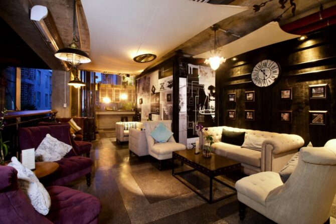 Несмотря на то, что отель Wave был открыт в 2013 году, он прекрасно передает дух Майами 1940-х годов. От старинного ярко-розового Кадиллака, припаркованного снаружи, до аквамаринового фасада в стиле арт-деко, атмосфера старого исторического района Майами-Бич детализирована до мелочей. Внутри тема продолжается — яркий и уютный вестибюль полон многочисленными предметами американской памяти, от старых кинопроекторов и радиоприемников до старомодного телефона и даже пары старинных парикмахерских кресел. Мебель элегантная и современная, а атмосфера модная и игривая, привлекающая в основном влюбленные пары.