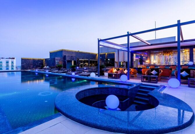 На крыше отеля есть длинный прямоугольный бассейн с шестигранной плиткой и гидромассажная ванна, в баре у бассейна подают небольшие блюда, коктейли и пиво. В спа-салоне Cenvaree можно заказать массаж и скрабы, а также посетить фитнес-центр. Пляжный клуб с шезлонгами находится через дорогу на пляже Донгтан.