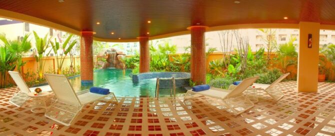 Фитнес-центр здесь большой и светлый, с серией современных тренажеров. Бассейн на крыше возможно слишком мал для купания, но он чистый и ухоженный. Еще больше радует потрясающий вид на Паттайю и бассейн этажом ниже, где гости также могут насладиться коктейлями у бассейна. Кроме того, в распоряжении гостей детский бассейн и платные услуги няни.