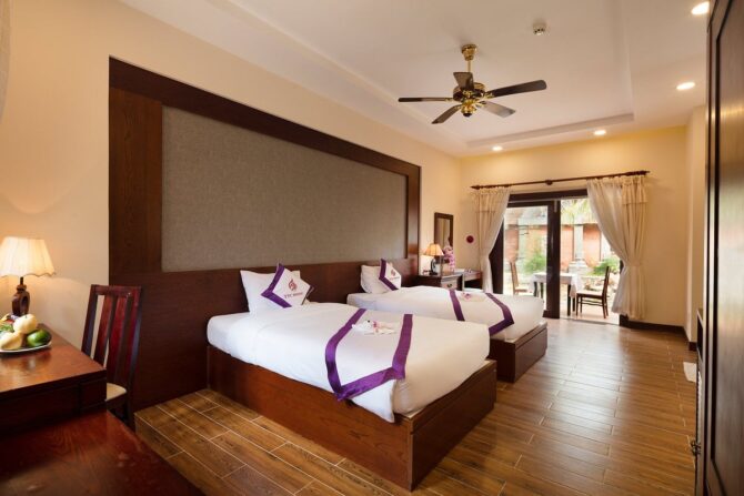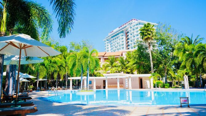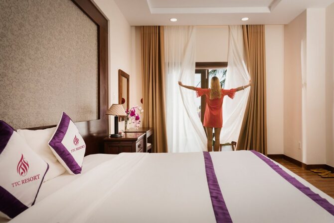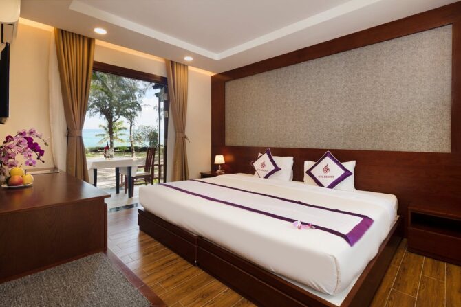 Трехзвездочные отели Пхань-Ранга предлагают прекрасные условия проживания и хороший сервис по сравнительно небольшие деньги. «TTC Resort Ninh Thuan — Unlimited Access to Water Park 3*» нравится гостям по нескольким причинам. Он находится возле пляжа Нинь Чу, состоит из небольших бунгало, в которых постояльцы проживают без соседей, три варианта завтрака входят в оплату проживания. Здесь созданы идеальные условия для отдыха взрослых и детей. Просторные номера, открытый бассейн, детская зона с водными горками и другими аттракционами – это далеко не все приятные сюрпризы, которые предлагает отель для полноценного отдыха. Его особенность и преимущество – широкая частная пляжная полоса. Нинь Чу является одним из лучших пляжей побережья. Он покрыт желтым и чистым песком, а пляж имеет форму полумесяца. Для проживания предоставляется 100 номеров, а сам гостиничный комплекс занимает территорию площадью 7 Га.