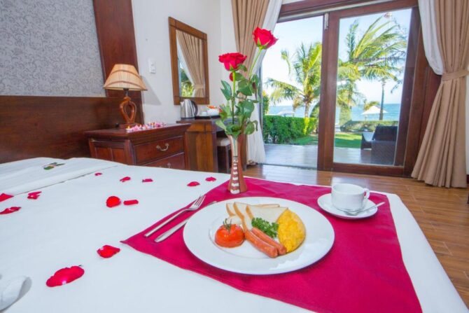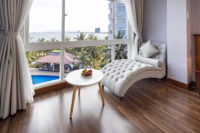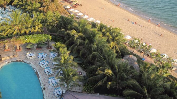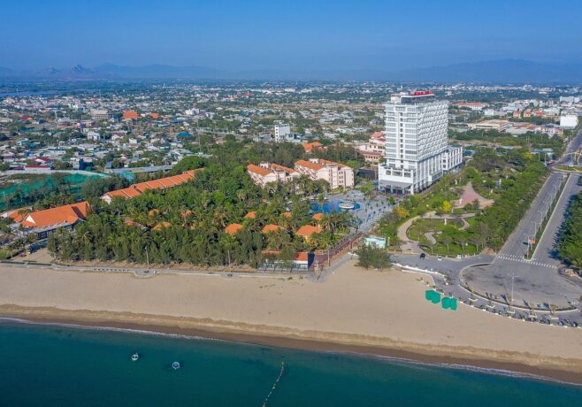 Saigon — Ninh Chu Hotel & Resort 4* построен на берегу Южно-китайского моря, имеет собственный пляж. Он принадлежит компании Saigontourist Group, отели которой отличаются элегантностью, современностью и удобным расположением. В фонде – 114 номеров, оформленных в нежных пастельных тонах. В них нет лишних предметов обихода, каждое кресло и кровать идеально подходят для полного расслабления. В ресторанах Seaview, Nha Mat, Ocean и на открытых террасах подаются знаменитые фирменные блюда из местных морепродуктов. Отель предлагает полный спектр услуг, включая открытый бассейн, фитнес-центр, бары, теннисный корт, детскую игровую площадку, караоке. Утром для постояльцев накрывается завтрак. Можно воспользоваться общим Шведским столом или заказать азиатскую, вегетарианскую/веганскую еду. Экскурсионное бюро отеля предоставляет возможность исследовать множество уникальных мест, таких как: Башня По Клонг Гарай, залив Вин Хи, пещера Рай, виноградник Ба Мой, песчаный холм Нам Куонг.
