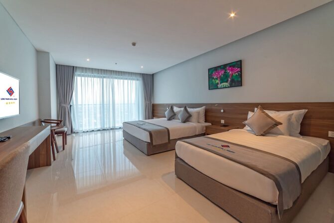 Long Thuan Hotel & Resort 4* расположен на пляже Нинь Чу. В фонде — 468 номеров и бунгало на 24 номера с современным оборудованием и удобствами. В основном ресторане подают завтрак «шведский стол», обед, ужин и праздничный ужин, такие разнообразные дополнения такие, как барбекю, фуршет для вечеринок, комплексное, азиатское, европейское меню. На территории открыто еще несколько кафе и баров. Для полноценного отдыха предусмотрены: минигольф, СПА-салон с кабинетами для массажа, теннисные корты, зал караоке. Гостям также предоставляются услуги парковщика и организатора экскурсионных туров.