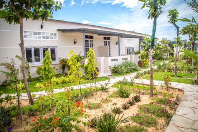 Если нет желания останавливаться в крупных отелях, то стоит обратить внимание на вариант проживания в семье. Вилла Cube homestay Phan Rang находится в 300 метрах от пляжа. Это большой дом на 6 номеров. Хозяева предоставляют бесплатный Wi-Fi, парковку, помогают взять автомобиль напрокат. На первом этаже обустроена общая гостиная с полностью оборудованной кухней. Из-за невысоких цен на проживание здесь любят останавливаться студенты и кейтбордисты. Местный пляж хорош для катания на кейтбордах. На его территории открыта одна из кейт-школ. Вечером хозяева открывают бар, в котором можно заказать коктейль и обсудить с соседями прошедший день.