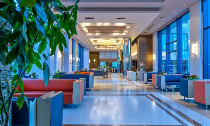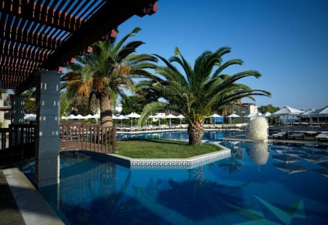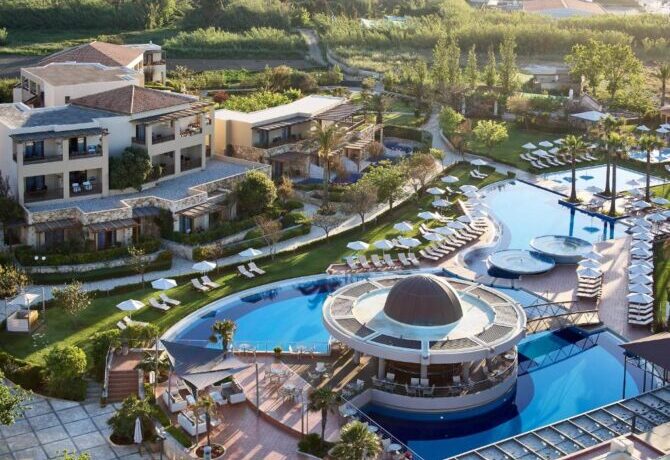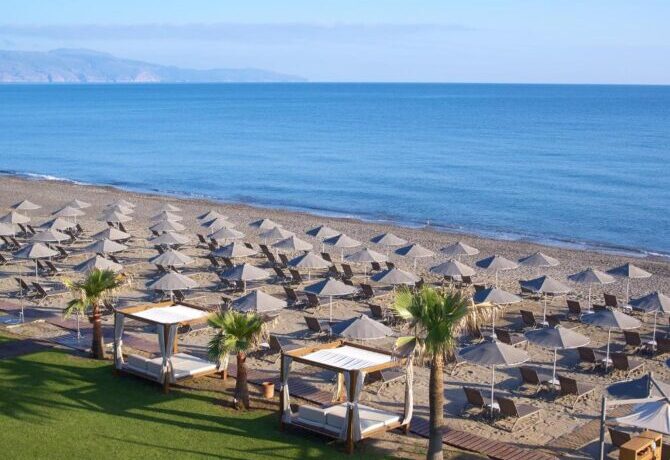 Одно из лучших мест для семейного отдыха с детьми. Работает команда аниматоров: групповые игры, йога, водная аэробика, детская дискотека и т.п. Достоинства отеля: комфортные номера, несколько бассейнов с зоной релаксации, трёхэтажный ресторан с неплохим разнообразием шведской линии, чистый пляж с удобным заходом. Высокие цены – это минус. Качественное питание: мясо, рыба, сладости, фрукты, разнообразие мороженого и вкусного хлеба. Персонал старательный, доступен просторный и бесплатный фитнес-центр. В «Порто Платаниас» отдыхают в основном европейские гости, поэтому здесь тихо и спокойно.
