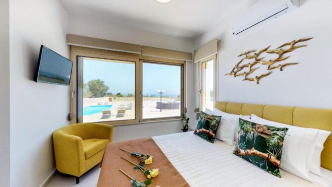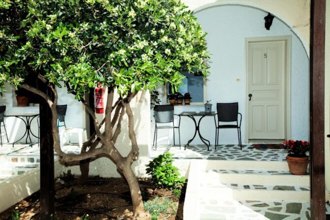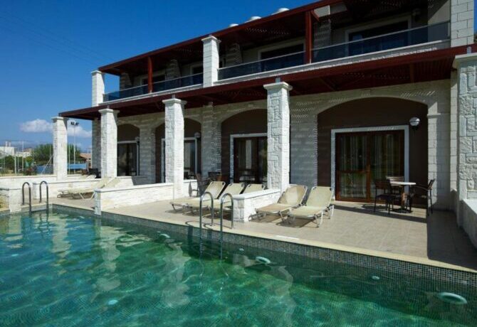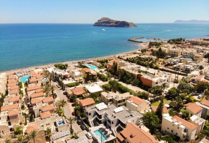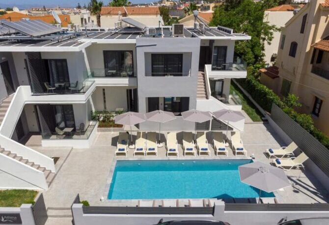 Ещё один маленький апарт-отель, на этот раз расположенный на холме в старой (верхней) части Платаниаса. Из плюсов: шикарные виды на город и побережье. Из минусов: до моря спускаться 15 минут пешком, обратно подниматься в гору. Пенсионерам и детям одолеть такой подъём может быть тяжело. Квартирки с мини-кухней в действительности чуть хуже, чем на фото, но жить можно – уютненько. Два корпуса буквой «Г», а по центру небольшой бассейн. Бесплатный вай-фай хорошо ловит. Бара нет, своей таверны тоже нет, но вокруг много хороших заведений с вкусной кухней и адекватным ценником. «Агримия» идеально подойдёт для молодёжной компании или тем, кто арендует автомобиль. Низкий ценник на проживание скрасит отдых и позволит посетить больше интересных экскурсий.