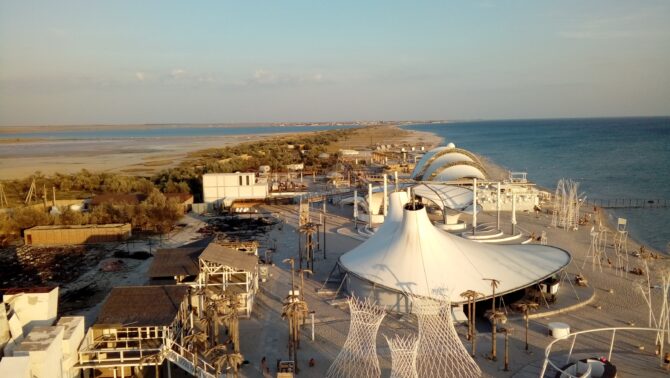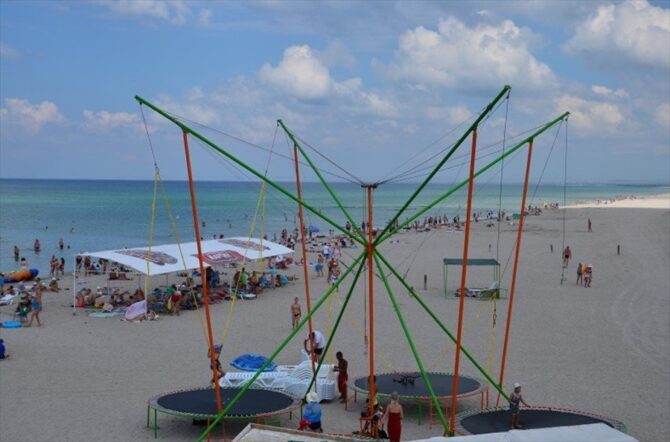 - Территория фестиваля «Казантип». Сейчас ее благоустраивают в виде развлекательной зоны для семейного отдыха. Здесь проводятся детские мастер-классы, работают небольшой аквапарк и кафе.