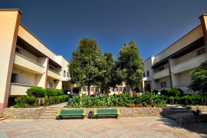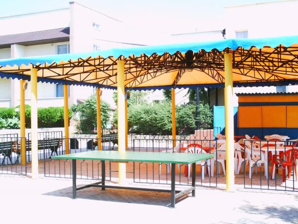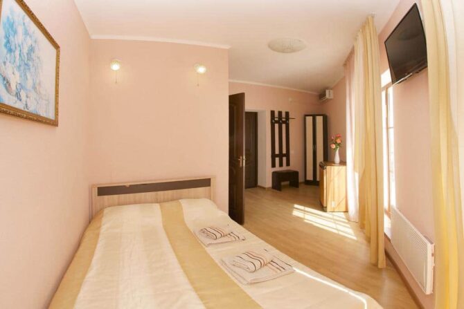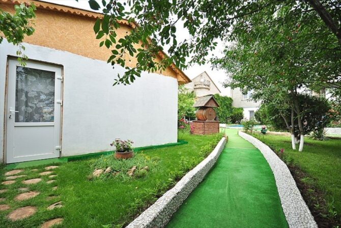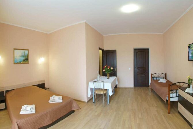 Гостевой дом «Альтера» предлагает для проживания семей 3-х и 4-х местные номера категорий «Стандарт» и «Комфорт». В стоимость входят услуги по организации экскурсий, парковка, интернет, посещение открытого бассейна. На территории работает кафе. Обслуживание по меню. В ассортименте имеются детские блюда. Возле бассейна установлен детский батут. До ближайшего черноморского пляжа – 800 м. В шаговой доступности от отеля находятся озера с лечебной грязью. В вечернее время можно поиграть с ребенком в настольные игры, которые администратор даст абсолютно бесплатно.