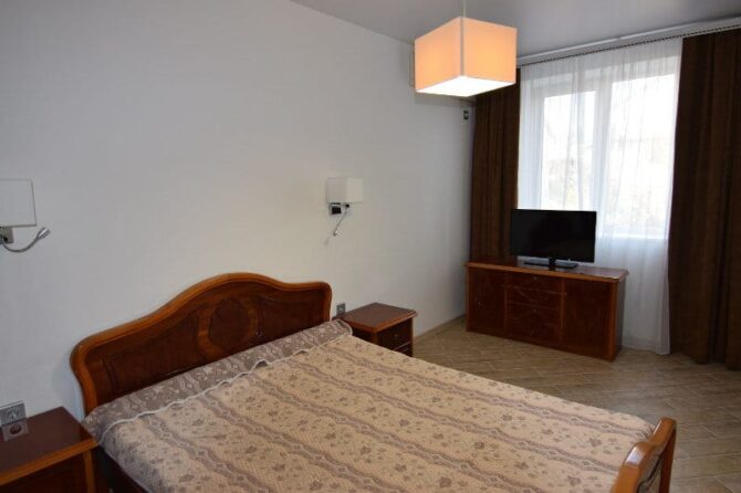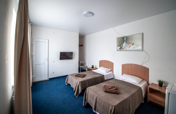 Рядом с аквапарком на первой береговой линии находится частный дом отдыха. Он создан на территории бывшего профилактория «Солнечный». В фонде – 71 гостиничный номер. В каждом установлены кондиционер, холодильник, телевизор, отдельный санузел с душем. Пансионат предоставляет проживание и питание по самым бюджетным ценам. Например, в высокий сезон (июль и август) двухкомнатный полулюкс с полным пансионом обойдется в 2700 руб./сутки с человека (цена актуальна на [y] г.). Детям до 7 лет предоставляются скидки. Их проживание с питанием составит 700 руб./сутки. К услугам гостей – библиотека, медкабинет, игровая комната, аниматоры, охраняемая парковка. Есть баня с купелью. При выходе из отеля постояльцы сразу попадают на благоустроенный пляж с небольшим аквапарком «Афродита».