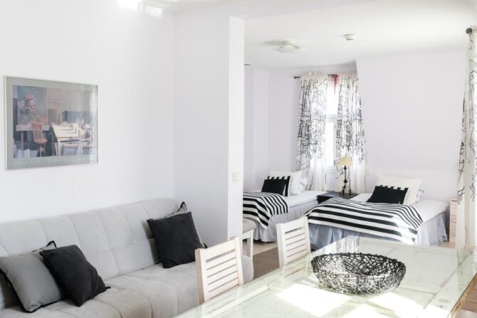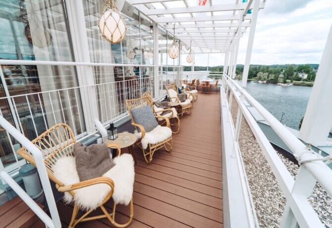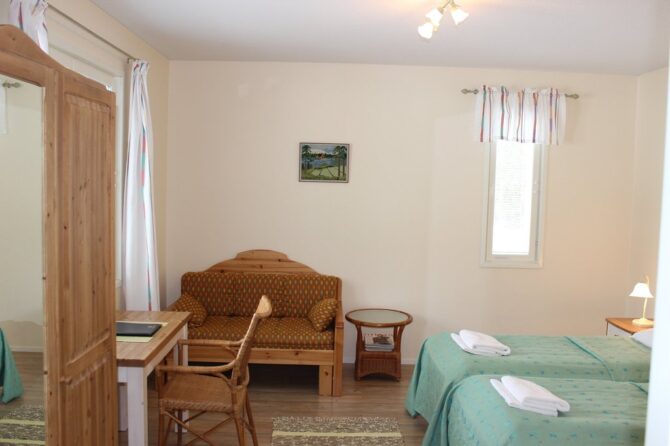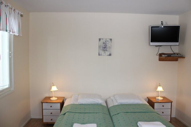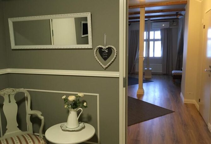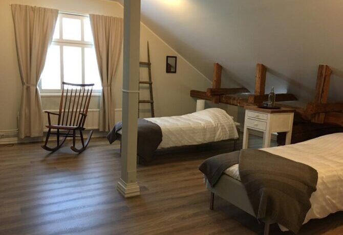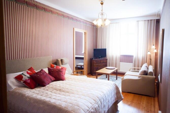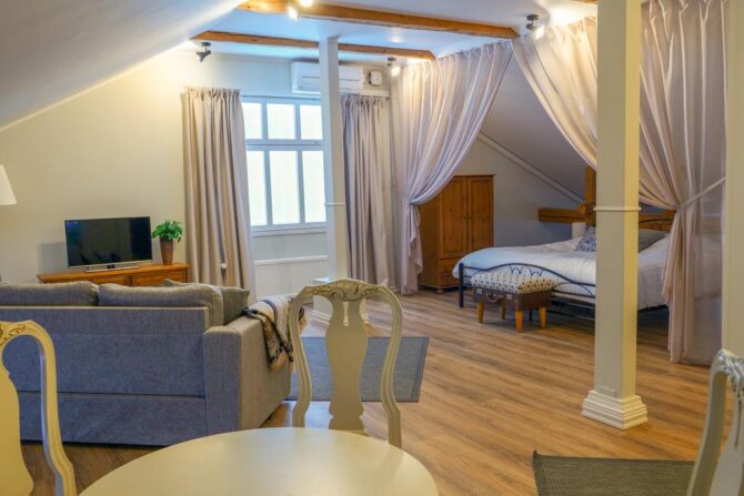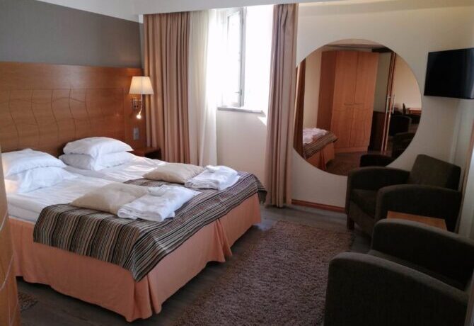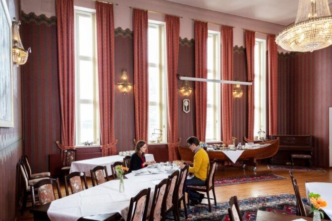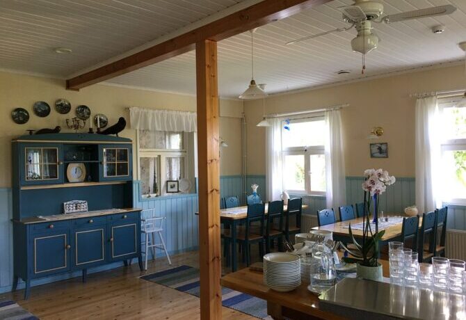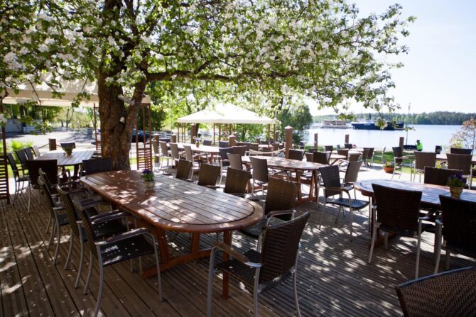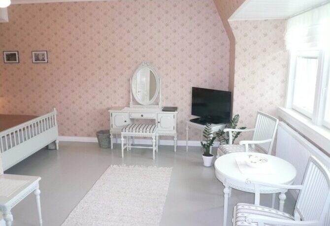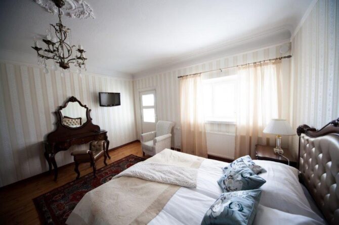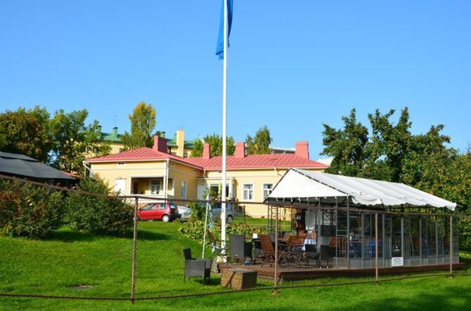 Небольшой уютный отель расположен на противоположном берегу от крепости Святого Олафа. Здесь оборудована частная пристань с лодками, от которой можно в любой момент отправиться на другой берег к исторической достопримечательности. Летом завтрак сервируется на лужайке перед домом. Зимой на ней устанавливается джакузи с подогревом. И все это с видом на памятник средневековой архитектуры. Гостей развлекают рыбной ловлей, катанием на лодках, зимой – лыжными и саночными видами спорта.