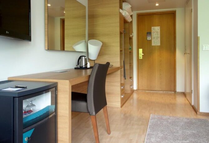 «Отель состоит из трех корпусов. Наш номер на троих был на втором этаже. Комната достаточно просторная, есть диван и стол, очень тепло. В коридоре поставлен кухонный уголок с микроволновой печью, чайником, кофемашиной и холодильником. Это очень удобно, когда при позднем заезде можно перекусить, подогрев еду и выпить горячий чай. На завтрак ходили в корпус, где находится ресепшн. Вкусный шведский стол с кашей, вареным яйцом, сосисками и беконом, свежие овощи, мясная и сыры, йогурт, хлопья с молоком, чай, кофе с печеньем и фрукты (яблоки и апельсины). Достаточно разнообразно» Елена
