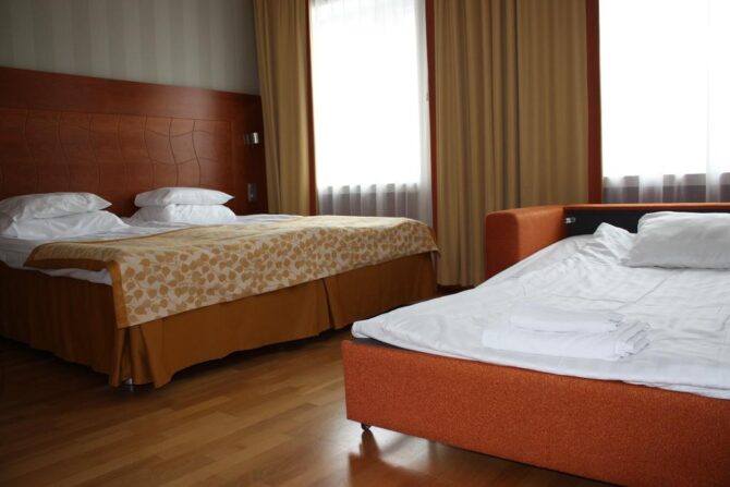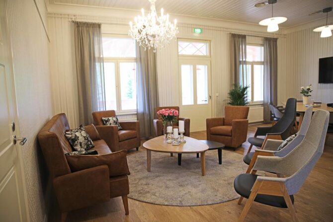 Частный гостиничный комплекс Resort Hotel Norppa построен на берегу Саймы в черте города Савонлинна. В лаконичном дизайне номеров нет ничего лишнего, как и в традиционных услугах отеля. Здесь есть все необходимое, чтобы отдохнуть и привести свое тело в порядок: сауна, прокат спортивного инвентаря, пешеходные и велосипедные маршруты, рыбалка. В оплату проживания входит завтрак по системе самообслуживания. Гости могут готовить еду самостоятельно на общей кухне. Работает лаундж-бар.