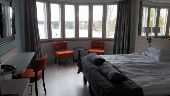 Остров, на котором расположен отель Spahotel Casino, находится в частных владениях. Любители пеших прогулок могут добраться до соседних островков по мостам или на лодках. До центра города всего 500 м. В гостинице оборудованы комфортабельные номера, бассейн, сауна, фитнес зона и спа-салон. Для детей создана игровая комната. Есть прекрасный концертный зал, где выступают известные музыкальные коллективы и исполнители. Изысканный завтрак сервируется в ресторане или на террасе. Шеф-повар специализируется на традиционной финской кухне из местных продуктов.