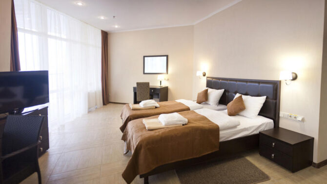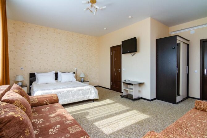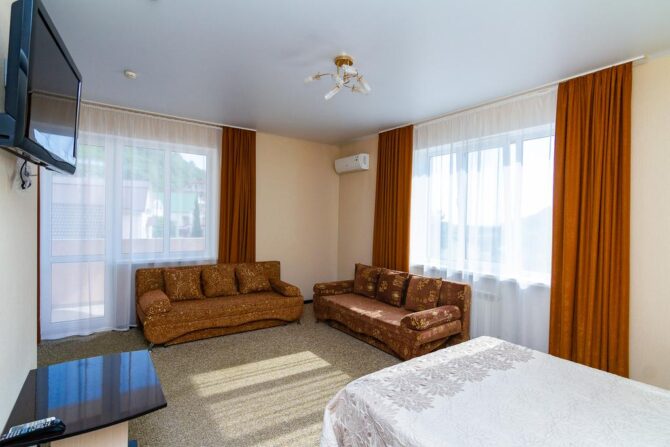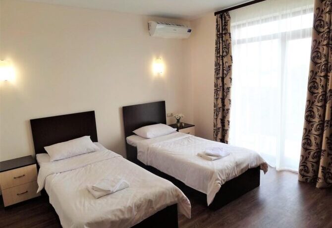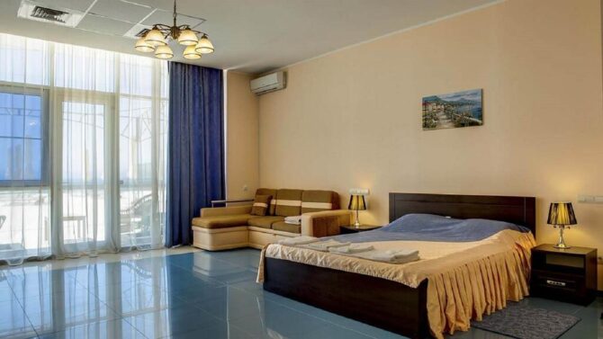 «Имеются как плюсы, так и минусы проживания в этом комплексе с детьми. Из положительных моментов – близко море, есть детская площадка, рядом автобусная остановка. Из недостатков – полный бедлам в столовой, плохое освещение территории ночью, отсутствие аптек поблизости. Номера стандартные, ничего примечательного и сверхъестественного. Вполне подойдут для проживания с детьми» Ольга, Россия