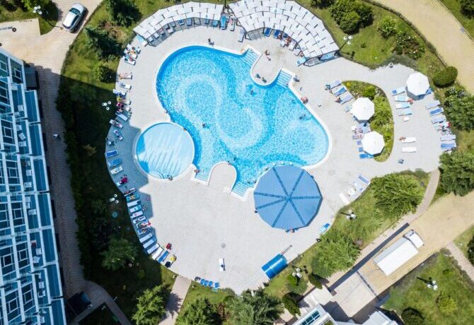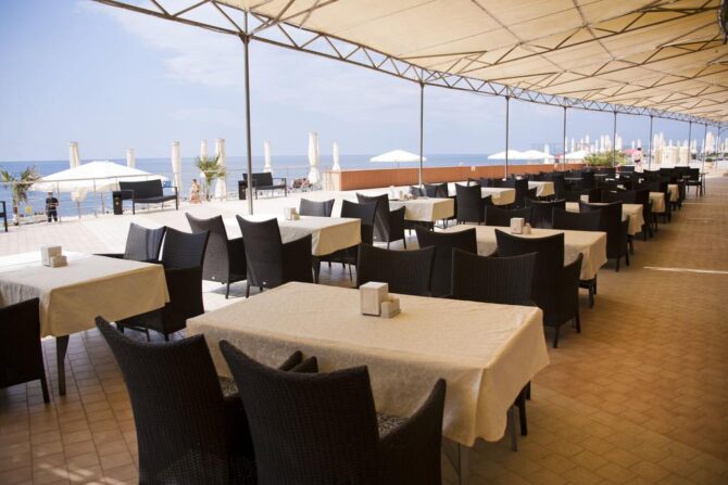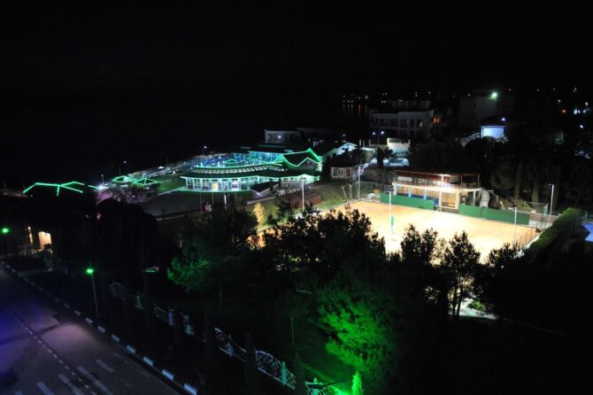 Для размещения отдыхающих построены 4 разно этажных корпуса. Отель имеет длинную историю, начиная с 1949 года, и не менее длинную историю реконструкций. Главным достижением является получение Голубого флага за чистоту пляжа. Здесь можно смело купаться, не опасаясь за здоровье. В стоимость проживания входит завтрак. Детям до 13 лет предоставляются скидки.