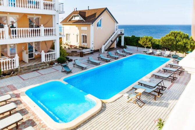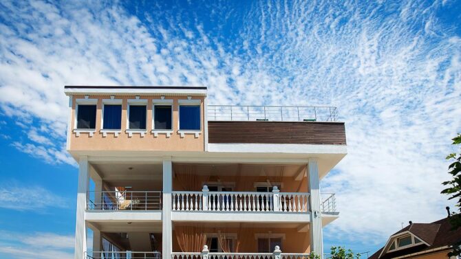 Трехэтажный гостевой дом «Севастопольская Усадьба» находится в 5 минутах езды до пляжа Укчуевка. Территория отеля закрытая, охраняется круглосуточно. Питание не предусмотрено. В высокий сезон работает кухня, где можно заказать приготовление пищи для себя и своей семьи. Оборудована мангальная зона. Номерной фонд просторные. Двор ухоженный. Имеется открытый бассейн. Дети до 4 лет принимаются бесплатно. Для них построена игровая площадка. Регулярно приглашаются аниматоры для развлечения маленьких гостей отеля. Кухня принимает заказы из детского меню.