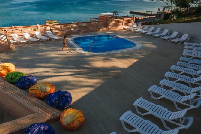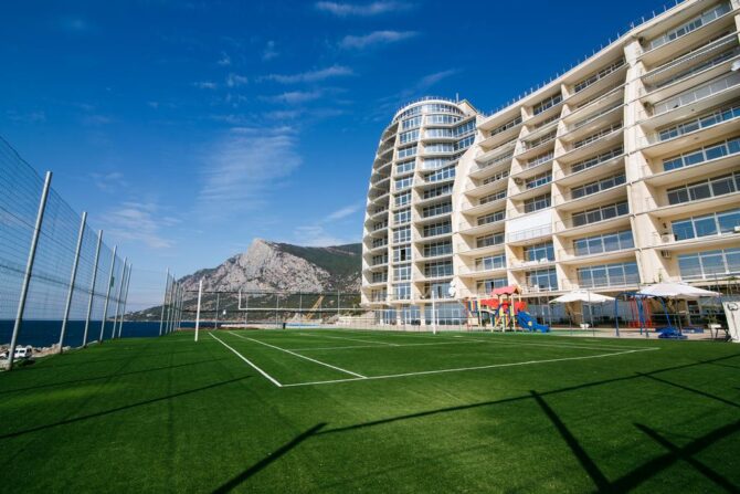 Гостиничный комплекс имеет уровень 3 звезды. Он расположен в бухте Ласпи. Чистое море в сочетании с горным воздухом являются главной причиной, почему сюда едут родители с детьми. До пляжа всего 15 метров. Это благоустроенная территория с теневыми навесами, шезлонгами, лежаками.