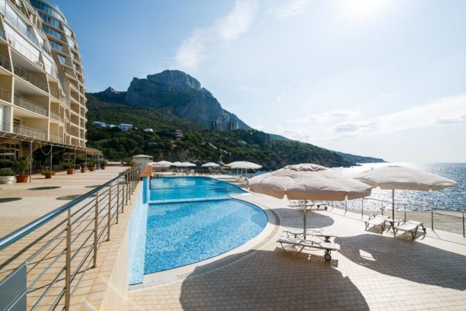 «Об этом отеле можно написать целый роман. Настолько здесь все противоречиво. Начну с плюсов – отличная территория, красивая, ухоженная, много цветов. Из окон (если они на море) открывается волшебный вид. До пляжа недалеко, но лучше выходить пораньше, чтобы забить место под солнцем там, где понравится. Пляж общественный, поэтому после 10 утра сложно протолкнуться. Из минусов – небрежная работа ресторана и обслуживающего персонала. В Крыму еще не научились ценить каждого гостя. Поэтому нужно запастись терпением и научить. В этом году снова сюда приеду» Роман, Россия