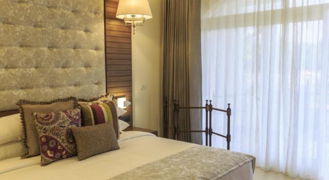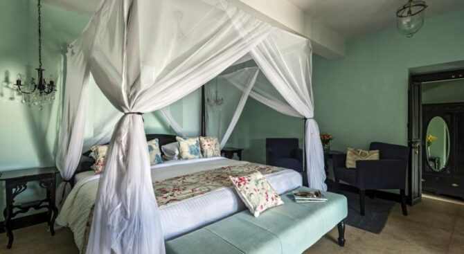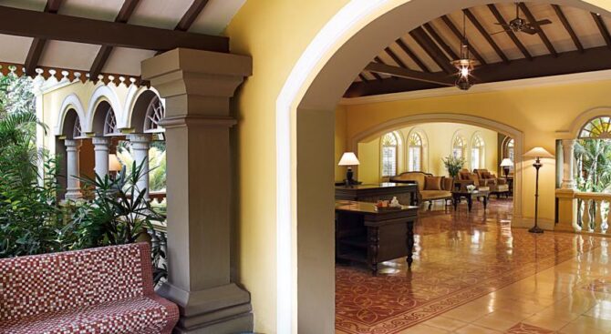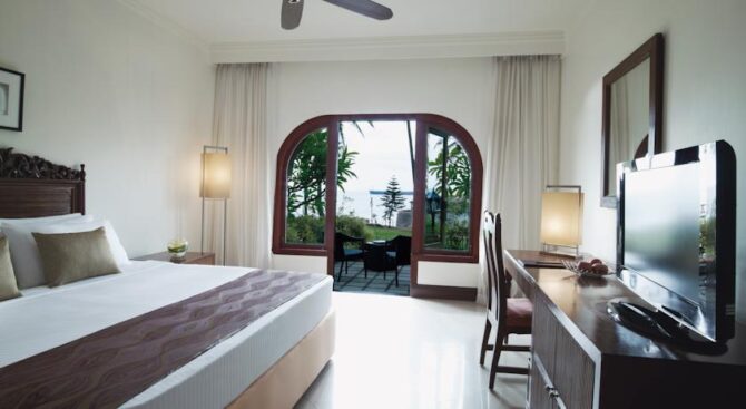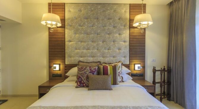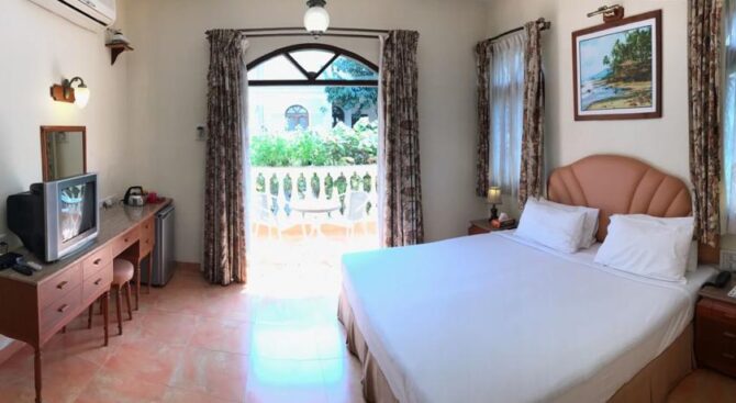 Большой, располагающийся на площади практически тридцать гектаров отель Vivanta by Taj Fort Aguada дружелюбно распахивает перед вами свои двери. Имеет 145 номеров, половина из которых с видом на Аравийское море. Они оснащены собственными балконами, деревянной мебелью, кондиционером, благодаря которому всегда можно поддерживать приятный микроклимат, современными телевизорами и, конечно же, собственной ванной комнатой.