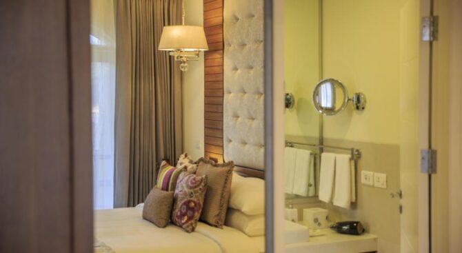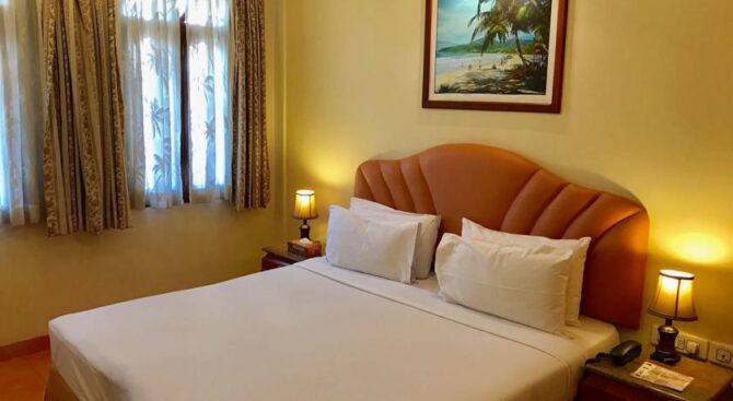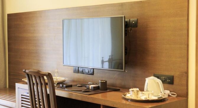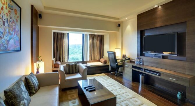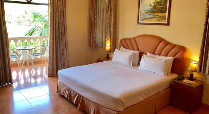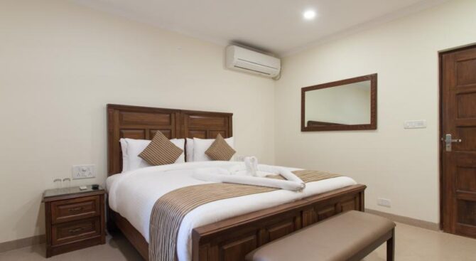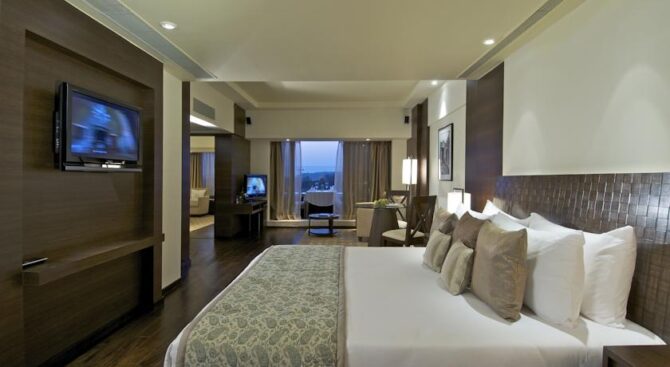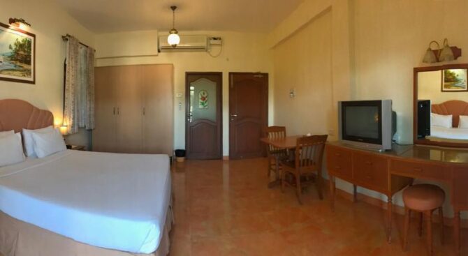 Райский отдых и незабываемые впечатления подарит отель Vivanta by Taj Panaji, с номеров которого открывается прелестный вид на реку и горы. Наблюдать за прелестными пейзажами вы сможете с больших окон, расположившись на маленьком, но удобном диванчике. Пол в номерах деревянный, есть телевизор, рабочий стол (на котором мы надеемся, вы работать не планируете), мини-бар и, конечно же, большая и очень удобная кровать.