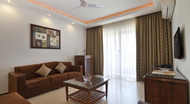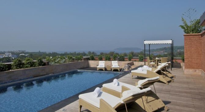 К морю идти не более 10 минут. На территории этого — одного из лучших отелей Северного Гоа имеется собственный бассейн, располагающийся на крыше здания, спа-салон, тренажерный зал, несколько ресторанов и баров, где можно насладиться невероятно вкусными блюдами и напитками.