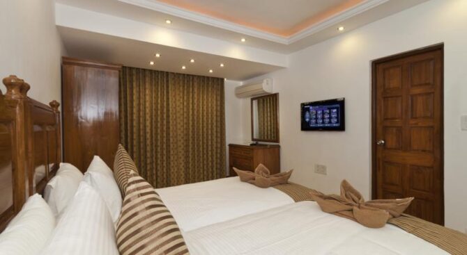 В этом отеле вас порадуют просторные и чистые номера, с окон которых открывается замечательный вид на местные просторы, сейф, различные принадлежности для приготовления чая или кофе, собственные ванные комнаты, современный телевизор и, конечно же, большая и очень удобная кровать.