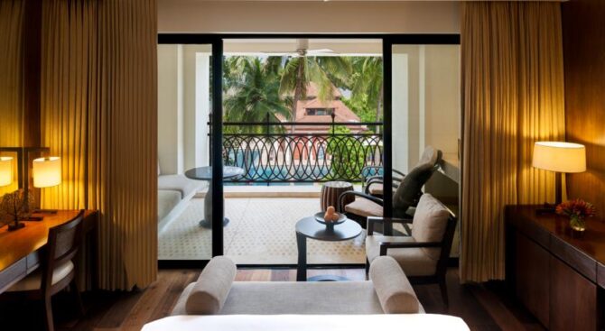 Ищите лучший отель Северного Гоа, который расположен максимально близко к морю? Тогда вам в Goa Marriott Resort & Spa, который расположен всего в двух минутах ходьбы до пляжа. Он является пятизвездочным отелем, на территории которого имеется бассейн, казино, а также спа-центр. Здесь же, гости могут насладиться вкусной пищей разных кухонь мира в каждом из трех ресторанов.
