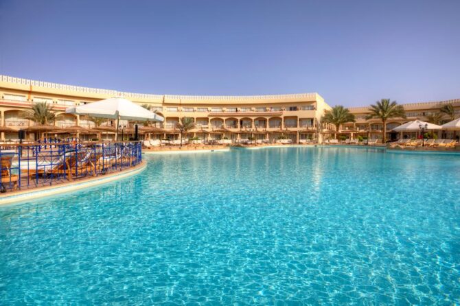 Отель Royal Albatros Moderna идеально подходит для гостей, желающих провести египетский отпуск по системе «Все включено». Этот оживленный курортный отель состоит из двухэтажных каменных зданий кремового цвета с большими белыми окнами. Отель построен в 2004 году, территория покрыта зелеными лужайками и пышными садами до самого пляжа. Песчаный пляж оборудован шезлонгами, соломенными зонтиками с плетеными ширмами для уединения. Выход к воде украшает деревянный пирс, с которого гости могут нырять или заниматься подводным плаванием.