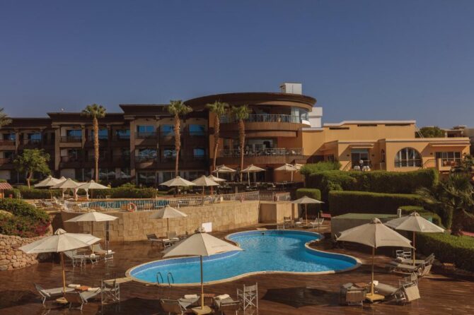 Самый маленький отель в Sea Group Resorts. На территории отеля расположены двухэтажные здания с ухоженными садами, зелеными лужайками, прудами, пальмами, видом на море и остров Тиран. В двух минутах ходьбы находится частный пляж на курорте-партнере, с зонтиками, шезлонгами, душевыми кабинами и частным Пирсом.