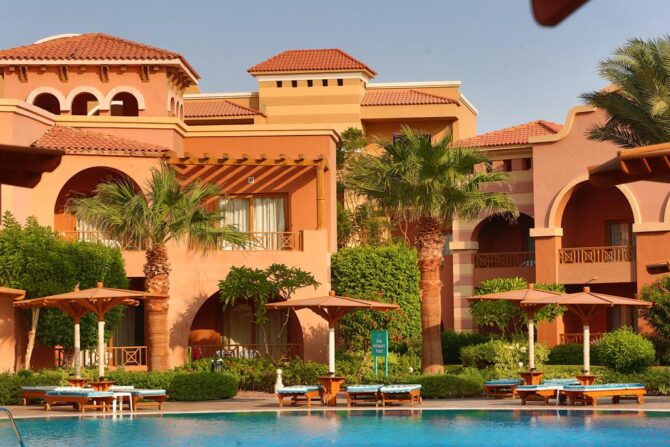 Как следует из названия, курортный поселок Кораллового моря — это автономный курорт без всякого соседства. Архитектура отельного комплекса — малоэтажные здания в андалузском стиле, утопающие в ярких цветах. Курортный отель расположен в недавно развитом районе на южной оконечности Синайского полуострова с видом на Красное море.