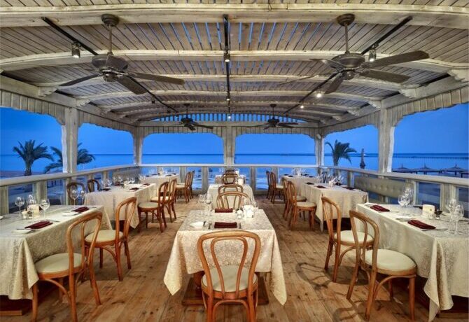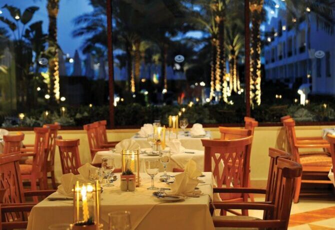В ресторане Tiran подают завтрак, обед и ужин в стиле»шведский стол», с окон открывается вид на остров Тиран. Есть также рестораны с обслуживанием по меню. Инфраструктура представлена бассейнами, тремя барами и прекрасным кафе на крыше, где гости могут покурить кальян или попить кофе. На курорте есть пять плавательных бассейнов, один из которых с баром и водной горкой.