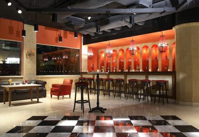 В отеле работает несколько ресторанов, в том числе индийский, египетский, итальянский. В некоторых ресторанах проводятся тематические вечера, различные бары и кафе предлагают все, начиная от танцев и заканчивая бассейном с кальянами и кубинскими сигарами.