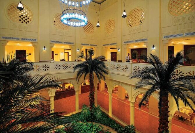 230 комфортных номеров отеля оформлены в аутентичных очаровательных тонах. Резная деревянная мебель, арочная лепнина в арабесках, обрамляющая кровати, небольшие узорчатые ковры, белые пуховые одеяла делают интерьер современным и стильным. Бежевая плитка ведет к раздвижным стеклянным дверям балкона с плетеными креслами, с которого открывается потрясающая панорама.