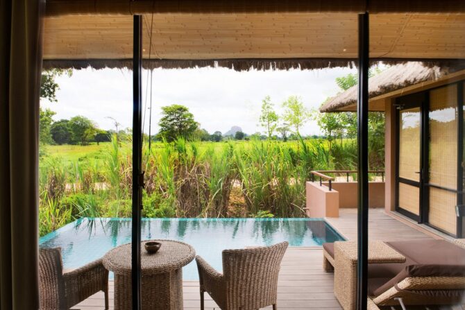 Все бунгало удалены друг от друга. Это дает возможность гостям почувствовать преимущества уединенного образа жизни в тишине среди первозданной тропической природы. 24 бунгало имеют небольшой частный бассейн. Для гостей отеля доступны объекты, посетив которые, можно расслабиться или зарядиться энергией и бодростью:
