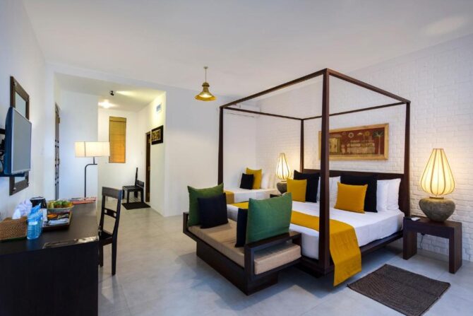 Одним из наиболее достойных вариантов отдыха для молодоженов и семейных пар станет «Роо Мансала» – пятизвездочный бутик-отель, расположенный в 1,7 км к северу от входа на территорию Археологического музея. Шесть двухэтажных вилл, расположенных в ухоженном саду и окруженных густыми ланкийскими лесами, оборудованы просторными террасами, где в жаркую погоду можно укрыться в прохладной тени и любоваться красотой тропической природы.