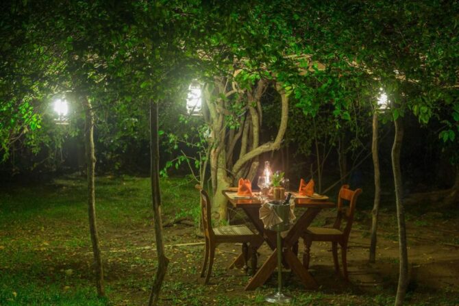 Для отдыхающих оборудована зона отдыха для расслабленного послеполуденного времяпрепровождения и барбекю. Чтобы познакомиться с деликатесами ланкийской кухни, гости отеля посещают ресторан Samara, вмещающем до 170 человек. Прохладительные напитки доступны в небольшом баре. При желании гости отеля могут заказать ужин у костра в зоне отдыха или за столиками на берегу живописного озера.