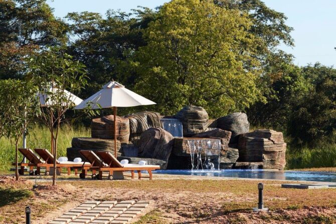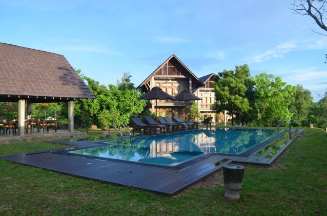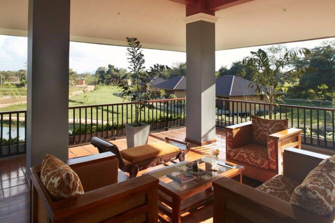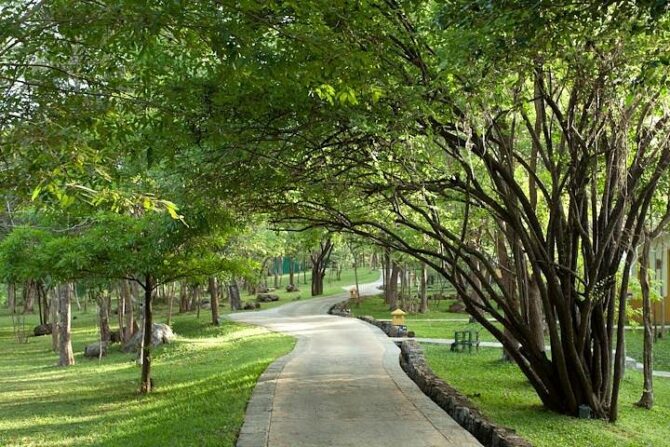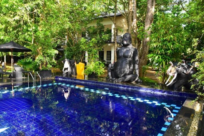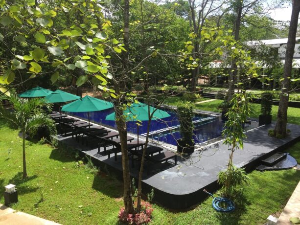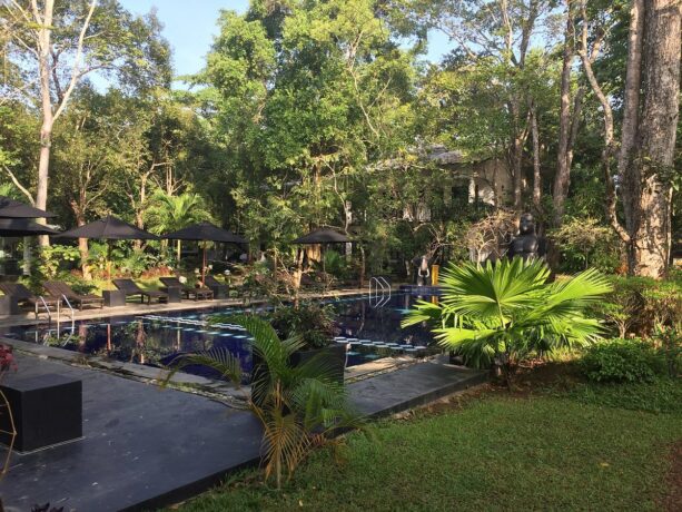 Романтический отпуск гарантирован семейным парам, которые выберут отдых в «Водном саду» – пятизвездочном отеле, расположенном в 10,5 км к северу от Львиной скалы. Гостиничный комплекс Water Garden занимает обширную территорию, которая включает в себя рисовые поля, искусственные и естественные небольшие озера и каналы. Отель предлагает отдыхающим размещение в 30 благоустроенных одно- и двухэтажных виллах.