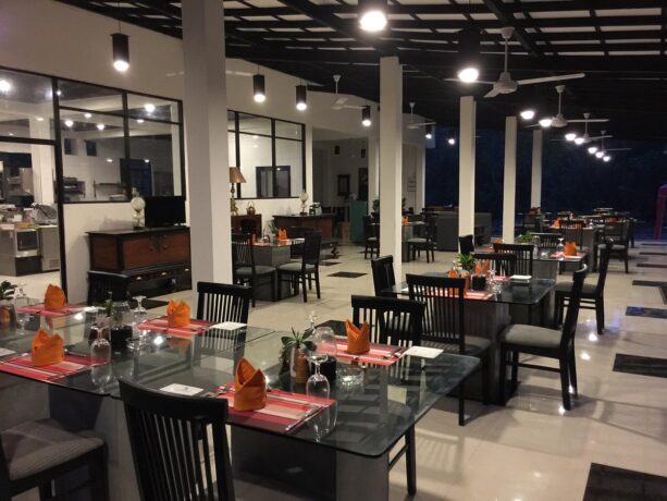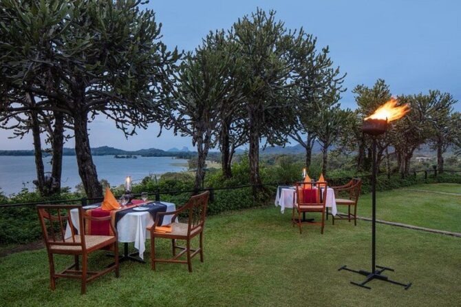 В гостинице также организуются автобусные экскурсии в Сигирию и в соседние национальные парки, где можно стать участниками сафари на послушных слонах. Освежающие напитки, закуски и коктейли доступны для гостей кафе и двух баров. По желанию отдыхающих ужины и завтраки сервируются в специально оборудованной пещере или на платформах, размещенных на озере. Вечерами в баре Kanchana можно послушать игру пианиста на рояле. В отеле посетителей принимают два ресторана: