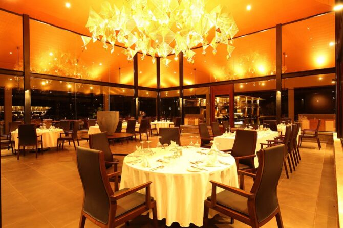 В отеле работает команда профессиональных массажистов, которые оказывают услуги на виллах гостей. Ресторан представляет собой просторное помещение под высокой деревянной крышей. Меню включает множество блюд самых разных кухонь.