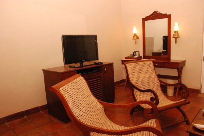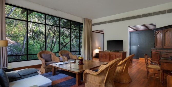 Для туристов, мечтающих об отдыхе в настоящих джунглях, по-настоящему уникальное место расположено на берегу озера Кандалама в 22,3 км к юго-западу от Сигирии по автомобильной дороге. Heritance Kandalama – пятизвездочный отель-курорт – располагает 152 просторными номерами, стены которых украшены деревянными панелями.
